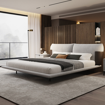 Tatami Minimalista Italiano Cama De Couro Chão ao Teto Cama Baixa Luz Luxo High-end Grand Master Quarto Cama De Casamento